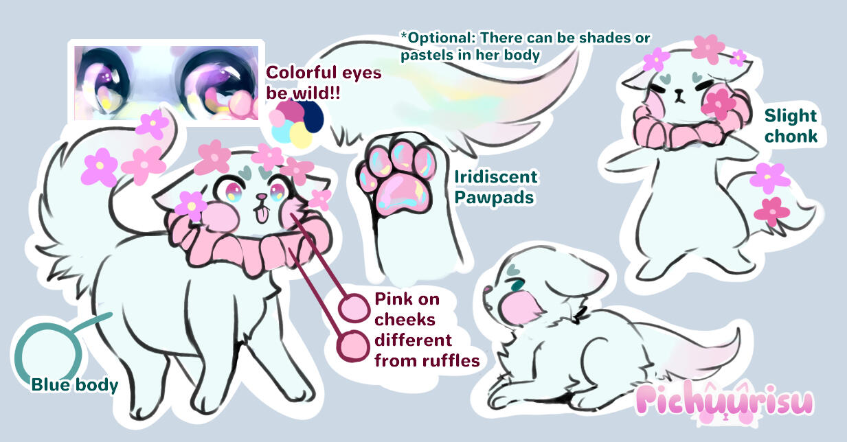 Pichuurisu, Pichuu for short, is a magical cat who lives in a mysterious garden in an alternate realm known as Driim.Aside from gardening, she loves to draw a lot. She started streaming on Twitch last 2022, where she get to show her art process and hang out with visitors.She can be cranky some times.